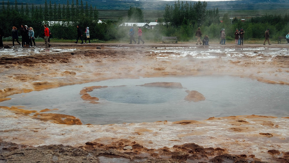 Leaving Reykjavik, we headed towards the ‘touristy’ sites first along a route known as the Golden Circle. We stopped first at Þingvellir National Park where you can see the Tectonic Rift where the North American and Eurasian tectonic plates are slowly drifting away from each other. There is a place close by where you can actually go scuba diving in between these two plates – however we decided to pass it up as it was pretty chilly. We then headed onwards on Route 36 towards the Geysers.